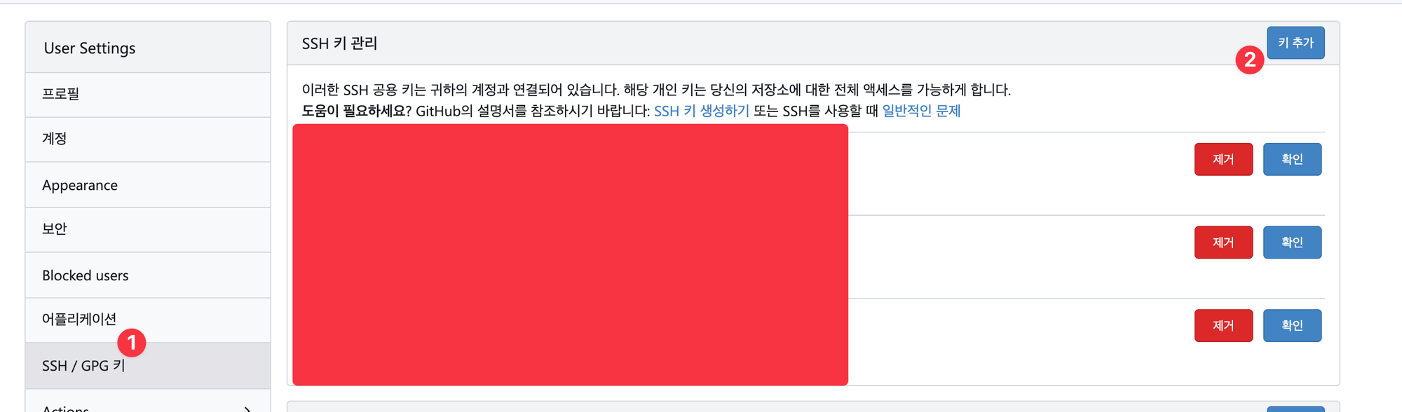 - 생성한 Public Key 를 ➡️ Gitea 메인 세팅 메뉴 SSH / GPG 키에 등록 합니다.