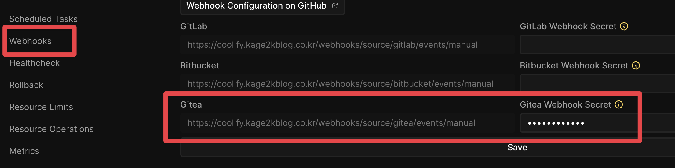 Gitea 부터 Coolify 설정