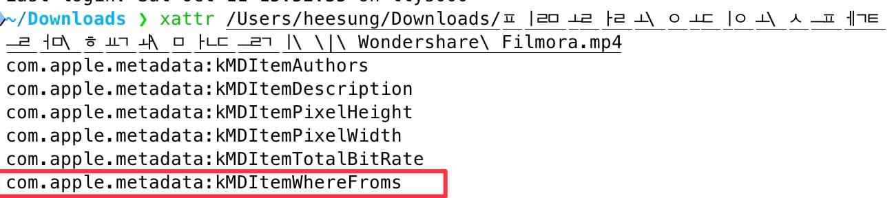 xattr -d com.apple.metadata:kMDItemWhereFroms 경로
